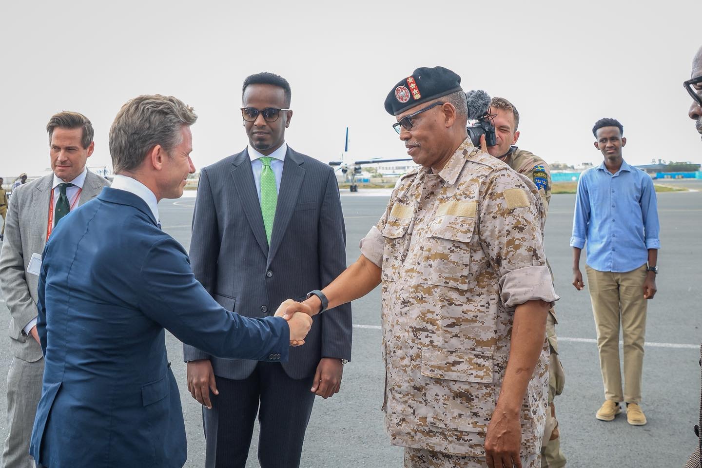 Wasiiru Dowlaha Wasaaradda Gaashaandhigga, Mudane Cumar Cali Cabdi, ayaa maanta kusoo dhaweeyay garoonka diyaaradaha Aadan Cadde International Airport, Wasiirka Gaashaandhigga Boqortooyada Sweden, Mudane Pål Jonson iyo wafdi uu hoggaaminayo, kuwaas oo booqasho rasmi ah ku yimid magaalada Muqdisho.