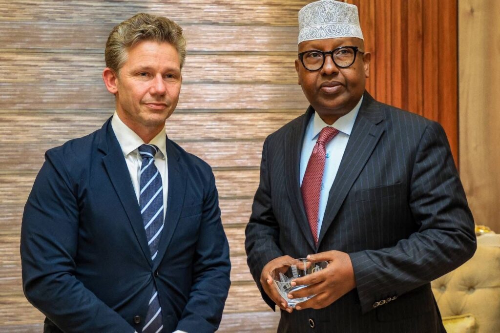 Wasiirka Gaashaandhigga Xukuumadda Federaalka Soomaaliya, Mudane Axmed Macallin Fiqi, ayaa maanta magaalada Muqdisho ku qaabilay dhiggiisa Boqortooyada Sweden, Mudane Pål Jonson oo booqasho rasmi ah ku yimid dalka.