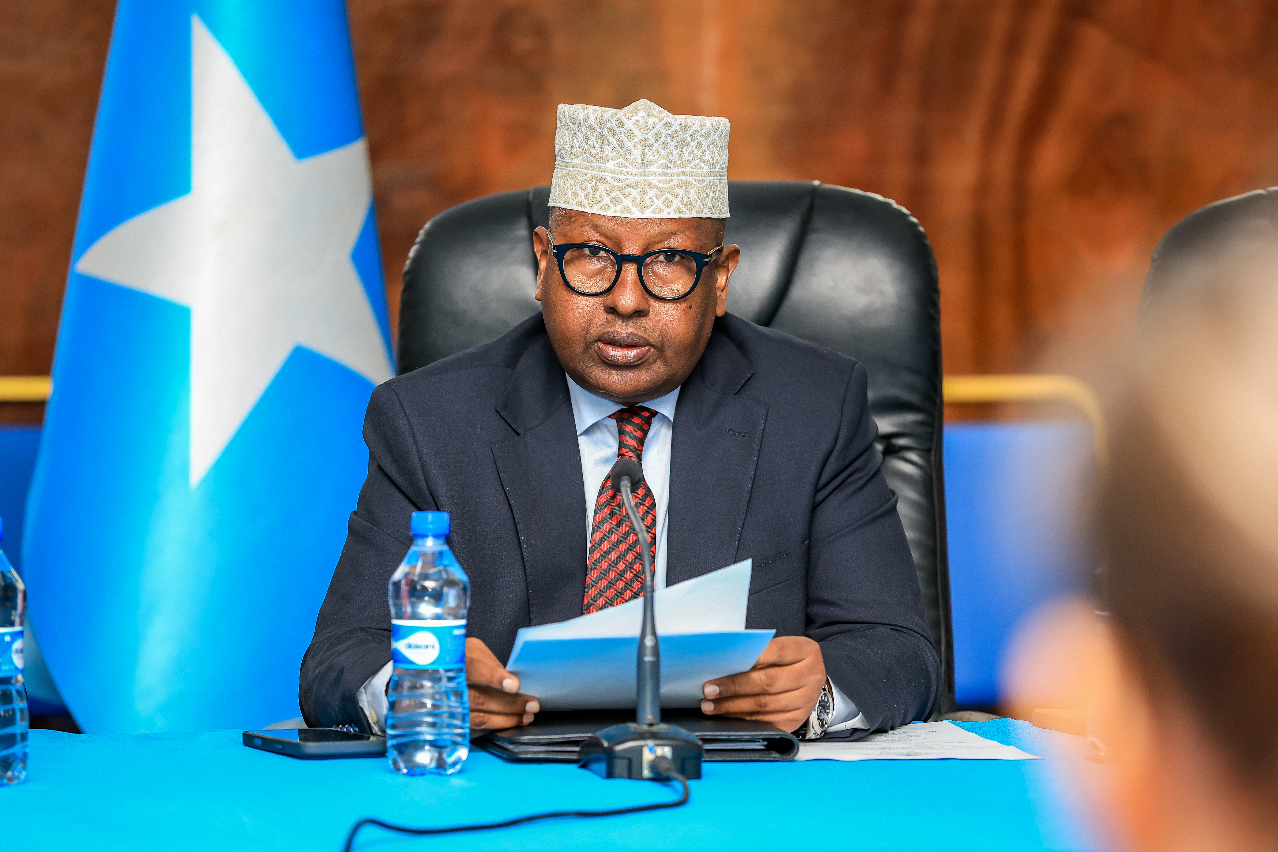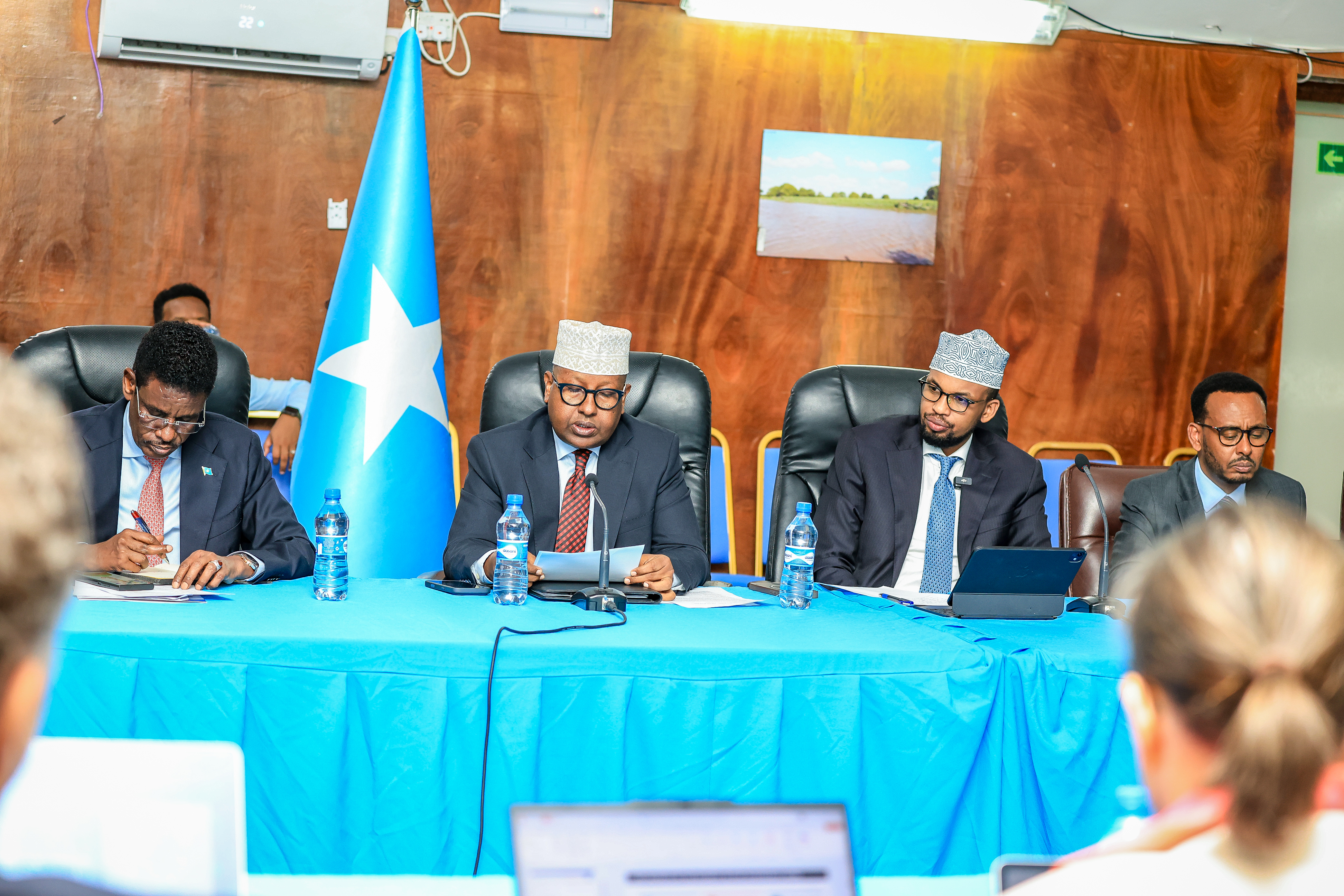 Wasiirka Gaashaandhigga XFS, Mudane Axmed Macallin Fiqi, ayaa maanta ka qaybgalay kulanka dib-u-eegista hannaanka dowladnimada iyo maamul-wanaagga ee la xiriira hay'adaha amniga dalka, kaas oo ay ka soo qaybgaleen mas'uuliyiin ka tirsan Dowladda Federaalka Soomaaliya, Bangiga Adduunka, iyo Saaxiibbada Caalamka.
