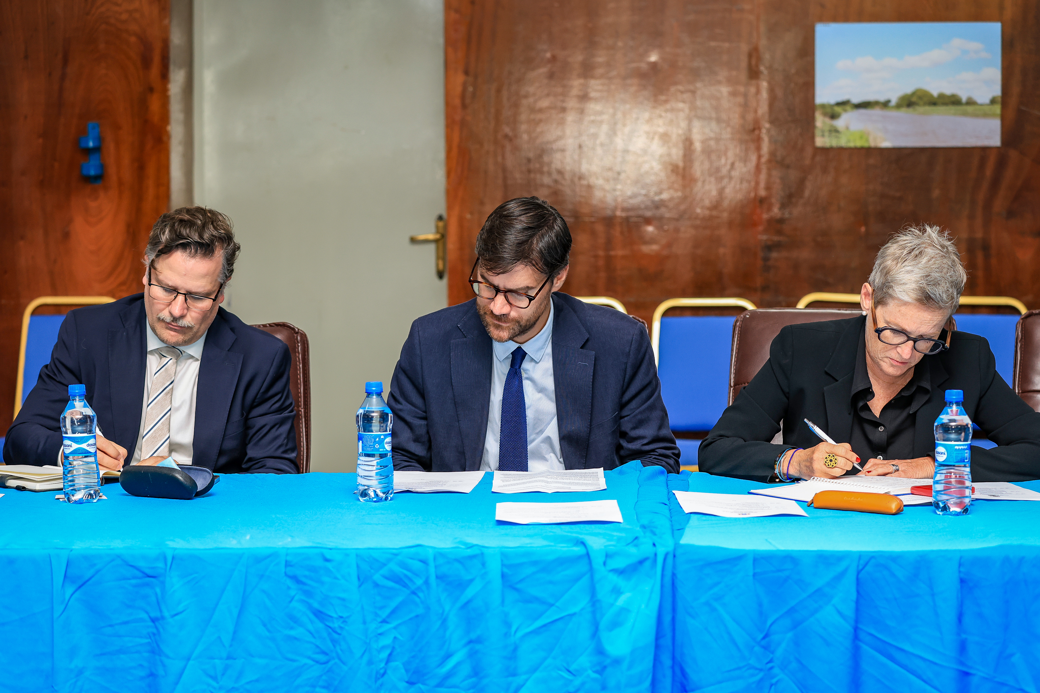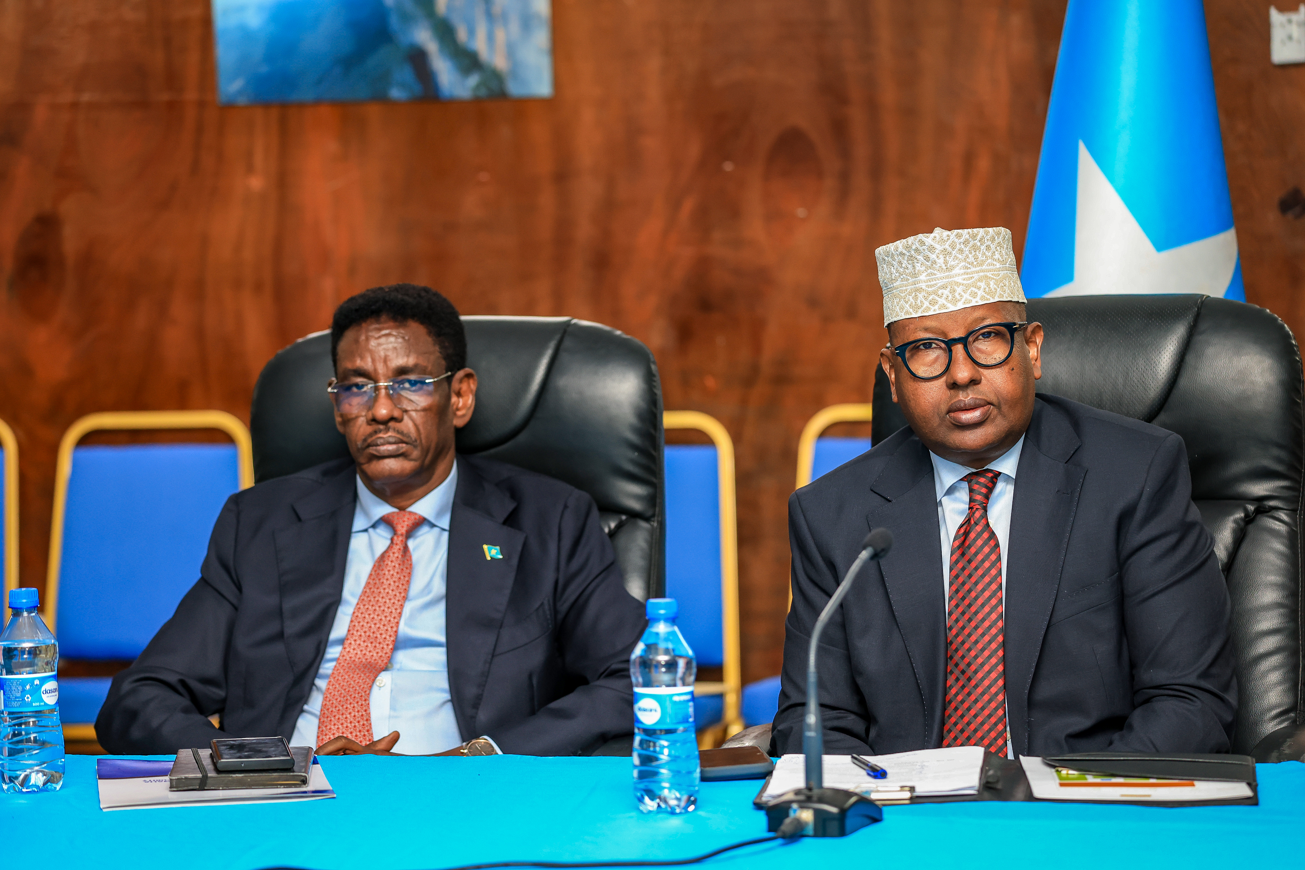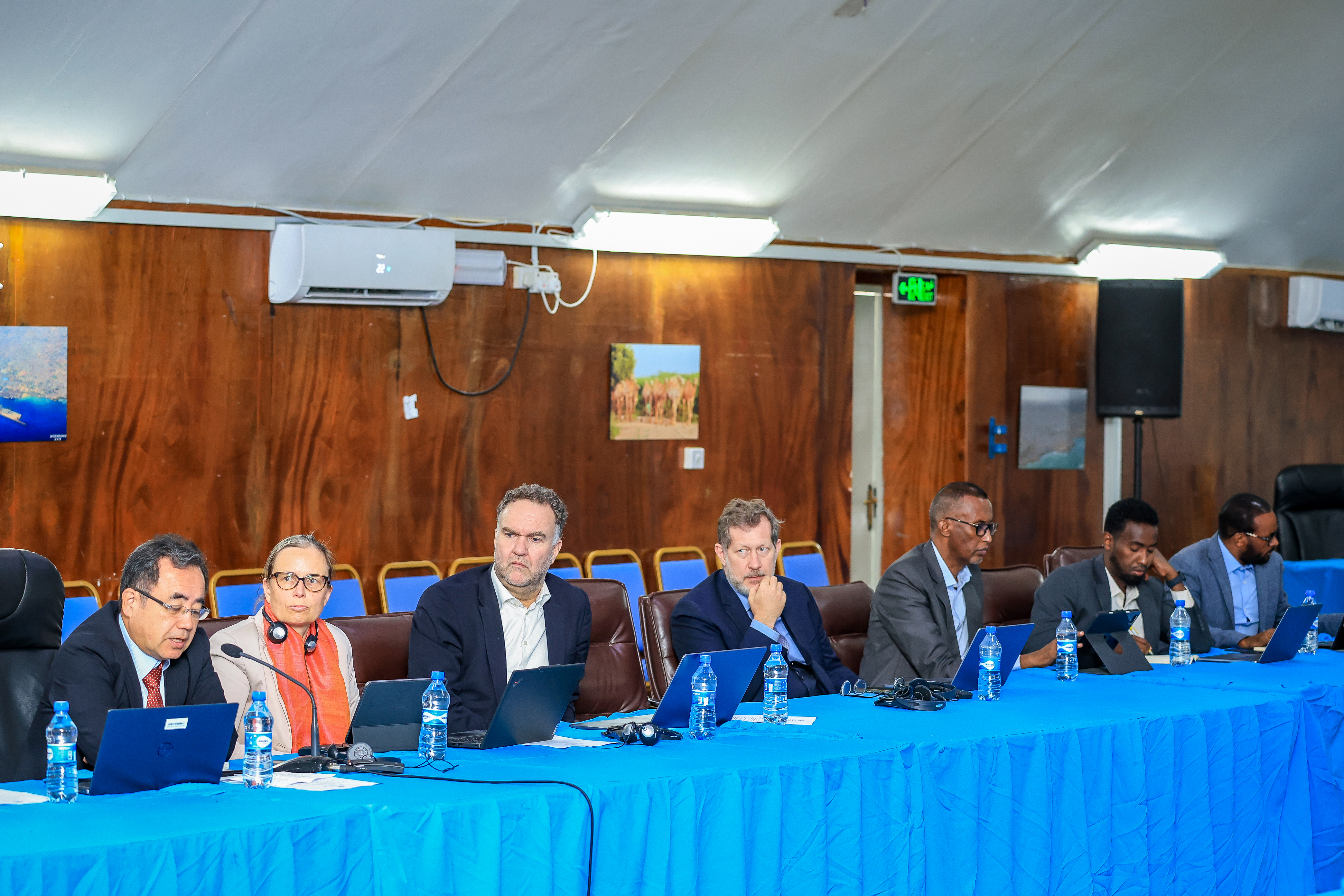 Kulanka waxaa sidoo kale ka soo qaybgalay Wasiirka Amniga Gudaha, Mudane Cabdullahi Sheekh Ismaacii, Wasiir Ku-xigeenka Maaliyadda Cabdiqafaar Cilmi Xaange, Agaasimaha Guud ee Madaxtooyada, Mudane Cabdixakiim Yuusuf, La-taliyaha Sare ee Arrimaha Difaaca ee Madaxweynaha, Marwo Jihaan Cabdullahi Xassan, Hideki Matsunaga, Maamulaha Bangiga Adduunka ee Soomaaliya, Verena Fritz, Madaxa Maamul-wanaagga ee Bangiga Adduunka iyo wakiillo ka socda Saaxiibbada Caalamka.